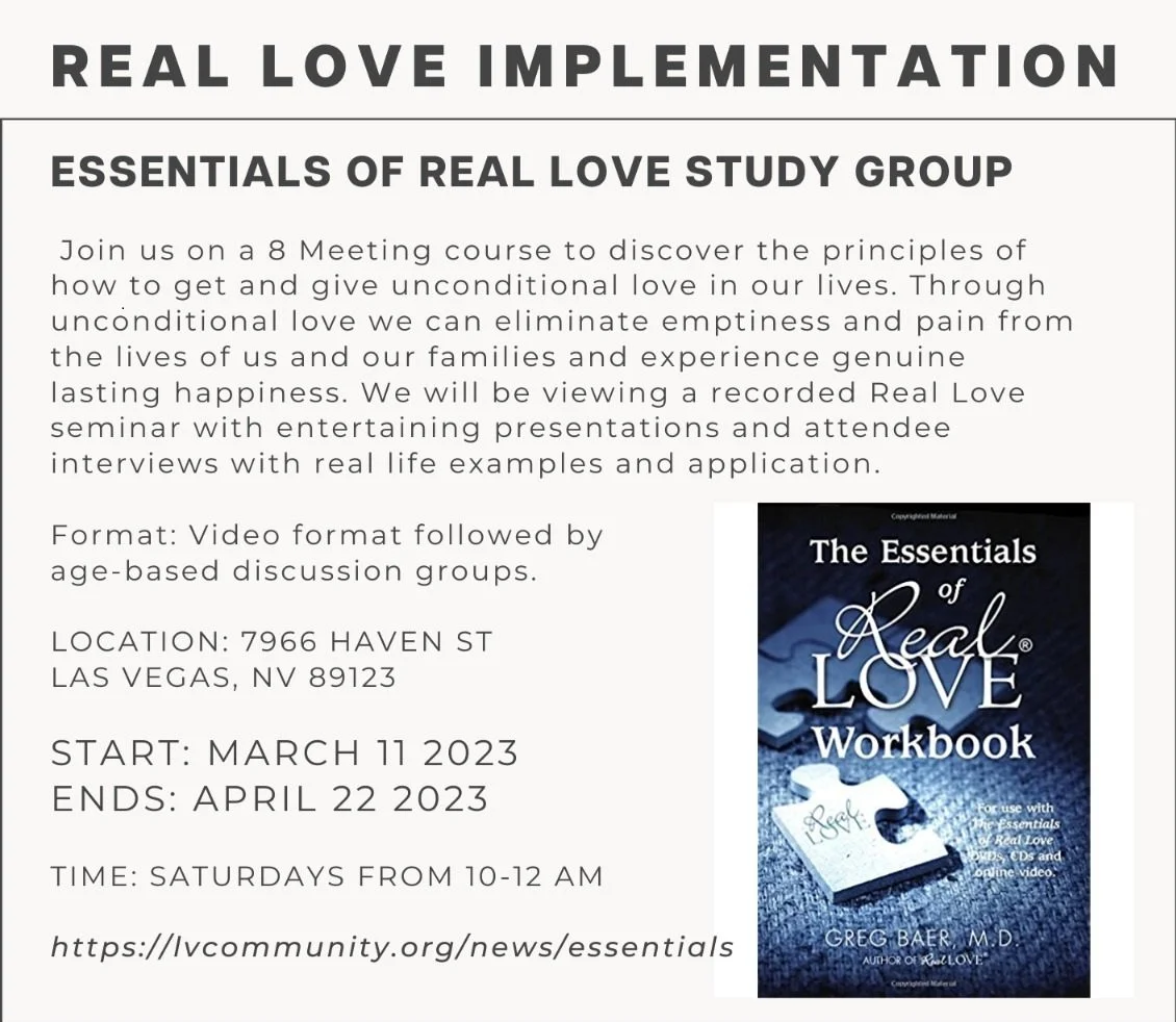 Join us for an 8-Week to discover the principles of how to get and give unconditional love.